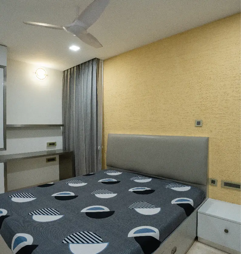 This project involved designing a vibrant, elegant, and minimalistic flat for Dr. Gayathri, a twin mom and long-time client. The design had to be practical, colorful, and future-proof, with a focus on the kids’ bedroom.