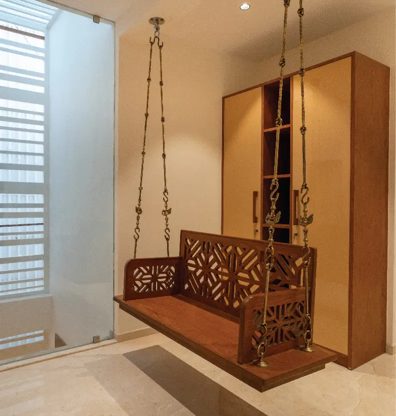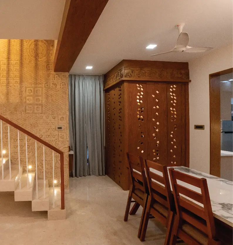 Dr. Gayathri, a long-time client and a twin mom, wanted a colorful, elegant, and minimalistic design for her flat. She specifically requested a kids’ bedroom with a bunk bed that could transform into single beds as her children grew older. The design had to be practical, vibrant, and future-proof.